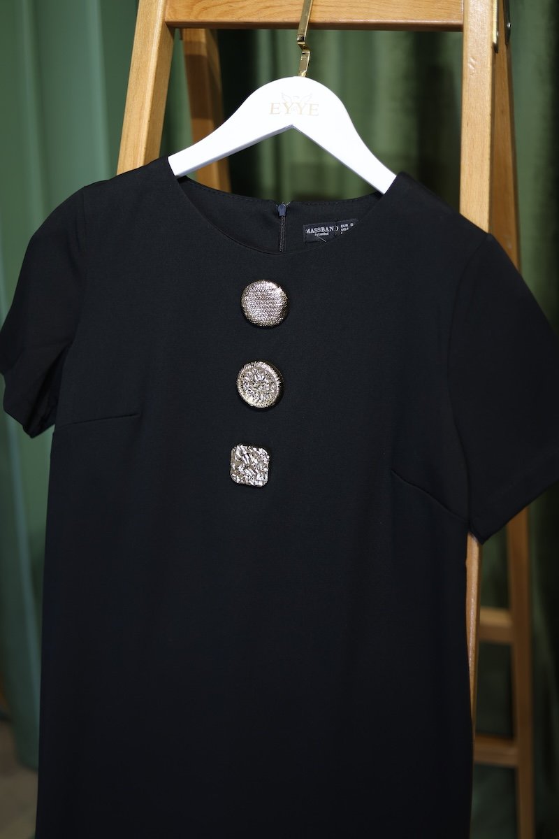 Büyük Düğmeli Kısa Kol Elbise Siyah M Massband