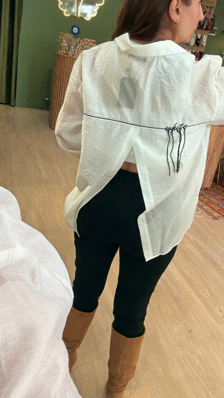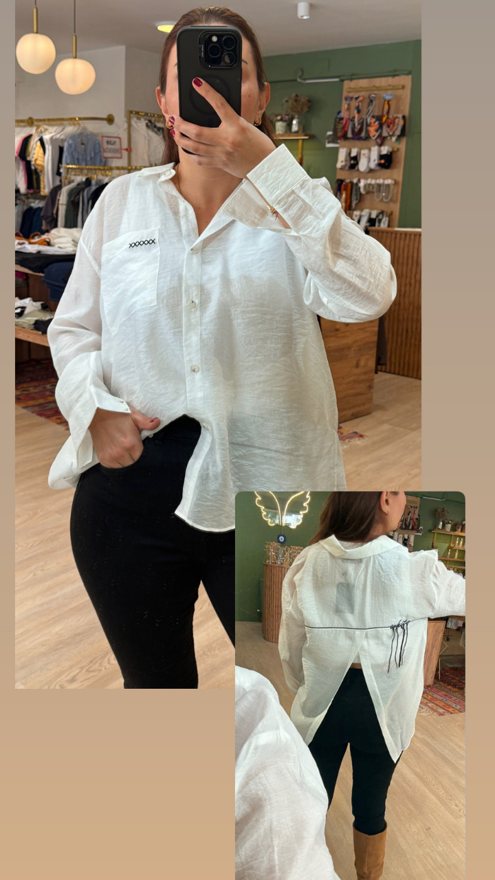 Klasik beyaz gömlek algısını tamamen değiştiren modern bir tasarım! Önü sade, arkası detaylı kesimiyle tarzınıza sıra dışı bir hava katacak bu gömlek; hem günlük kombinlerde hem de özel buluşmalarda kurtarıcı parçanız olacak. Hafif ve nefes alan kumaşıyla gün boyu rahatlık sunarken, özgün arka yırtmaç detayı ve bağlama şeritleri ile farklı ve cesur bir stil vadediyor.