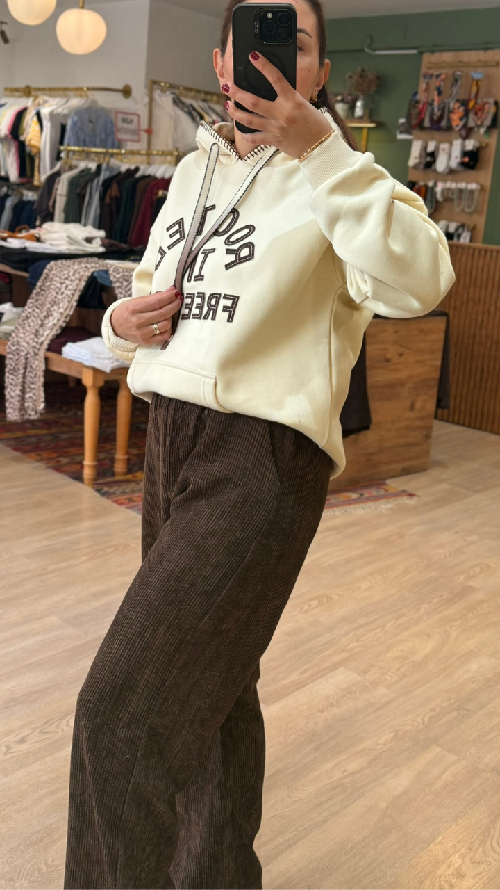 Soğuk günlerin vazgeçilmezi olacak bu sweatshirt, modern tasarımı ve konforuyla gardırobunuzun yıldızı olacak! İçi şardonlu yumuşacık dokusu sayesinde sıcacık tutarken, oversize kalıbı ile gün boyu rahat bir kullanım sağlar. Göğüs kısmındaki baskı detayı ve kapüşon tasarımıyla hem sportif hem de şık bir görünüm sunar.